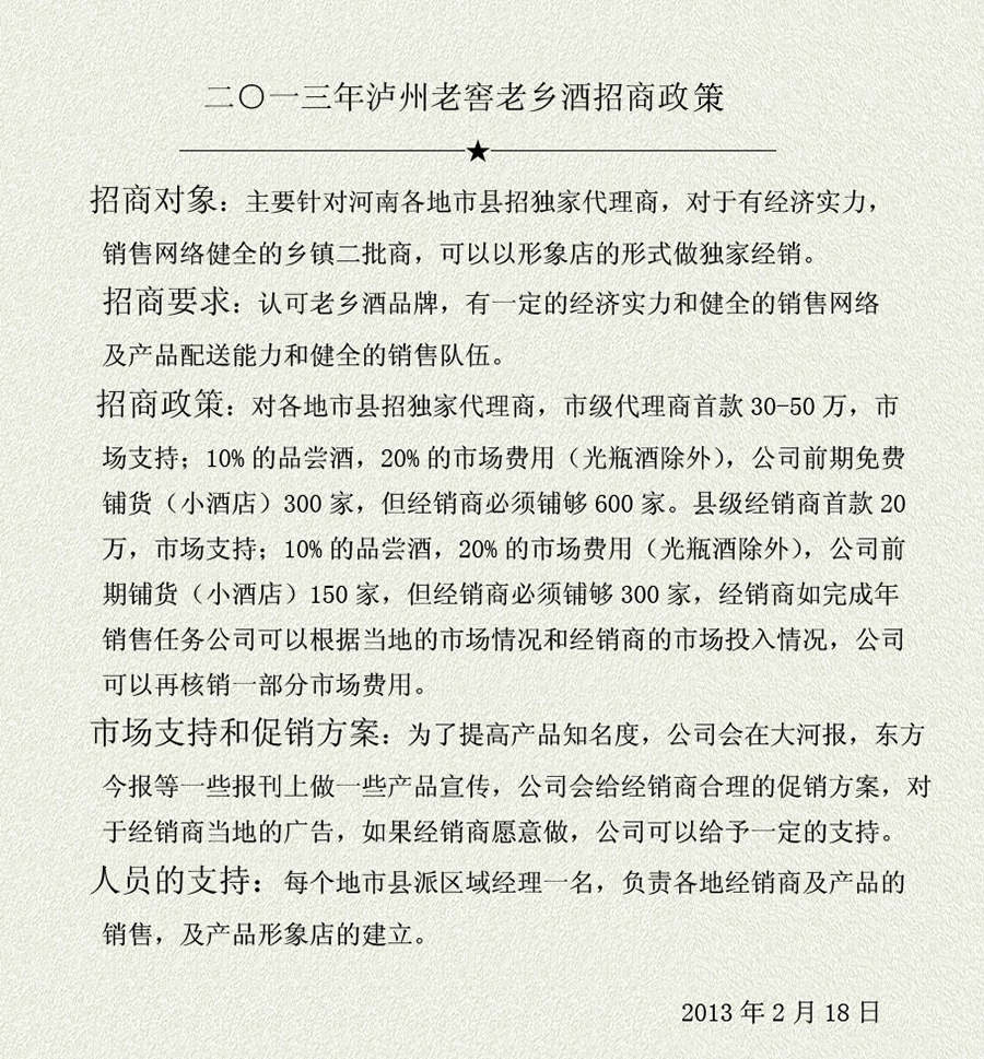 瀘州老窖自銷品牌河南營銷中心...