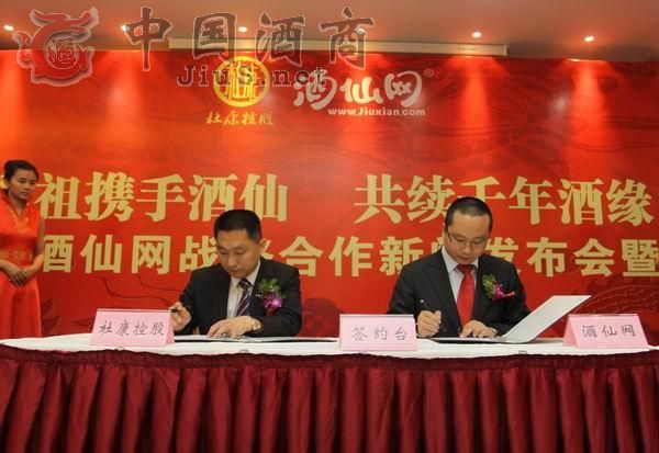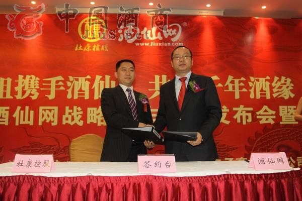 5月9日上午,“酒祖攜手酒仙,共續千年酒緣——杜康控股、酒仙網戰略合作新聞發布會暨簽約儀式”在鄭州大河錦江飯店四樓太行廳舉行,洛陽杜康控股總經理吳書青與酒仙網董事長郝鴻峰共同簽署了戰略合作協議,涉及酒祖杜康、國花杜康、杜康老窖以及專屬渠道開發等產品,力爭杜康今年在網上實現銷售收入1000萬元以上,3年內實現單年銷售收入超2億元。這也是河南白酒首屈一指次涉足電子商務。