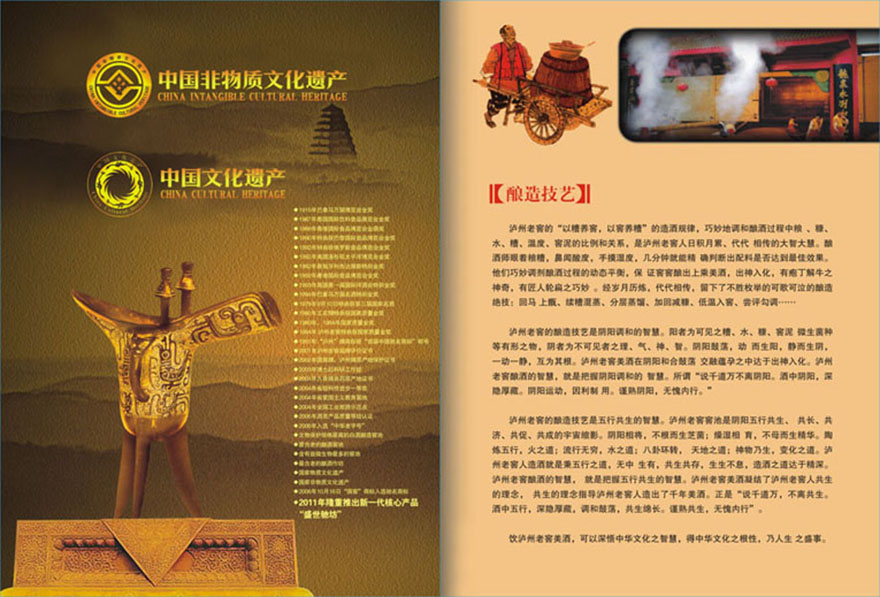 瀘州老窖源遠流長,是中國濃香型白酒的發源地,以眾多獨特優勢在中國酒業獨樹一幟。擁有我國建造早期(始建于公元1573年)、連續使用時間又長、保護又完整的1573國寶窖池群,1996年12月經國務院批準為行業全國重點文物保護單位,2006年被文物局列入“世界文化遺產預備名錄”!盀o州老窖酒傳統釀制技藝”作為川酒和我國濃香型白酒的代表,于2006年5月入選首批“非物質文化遺產名錄”,使瀘州老窖成為行業擁有“雙國寶”的企業。瀘州老窖特曲是中國的四大名酒,1915年獲巴拿馬太平洋萬國博覽會金獎,1952年在中國評酒會上被確定為濃香型白酒的典型代表,是蟬聯五屆 “中國名酒”稱號的濃香型白酒。