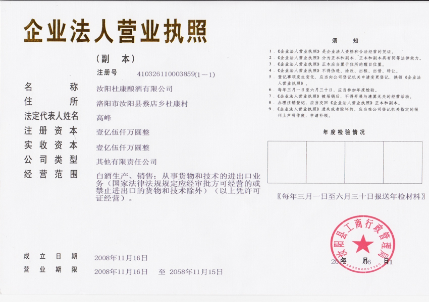公司名稱: 洛陽杜康控股有限公司