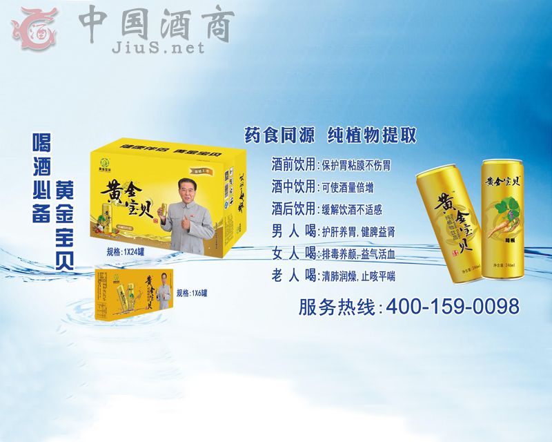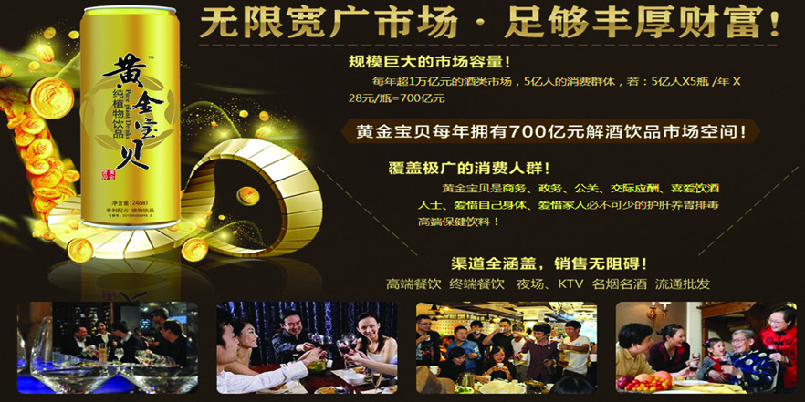 目前投放市場的“黃金寶貝”健康植物飲品,采用專項保密配方,經多年體驗驗證,它具有醒酒、護肝、養腎、養顏等效果,產品飲用效果神奇,尤其是在“醒酒”方面展現的神奇功效和令人吃驚的醒酒功能,倍受消費群體的喜愛與認可。