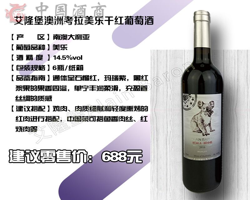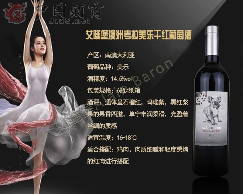 | 產品名稱 | 艾隆堡澳洲考拉美樂干紅葡萄酒 | 產品類別 | 紅酒招商 |