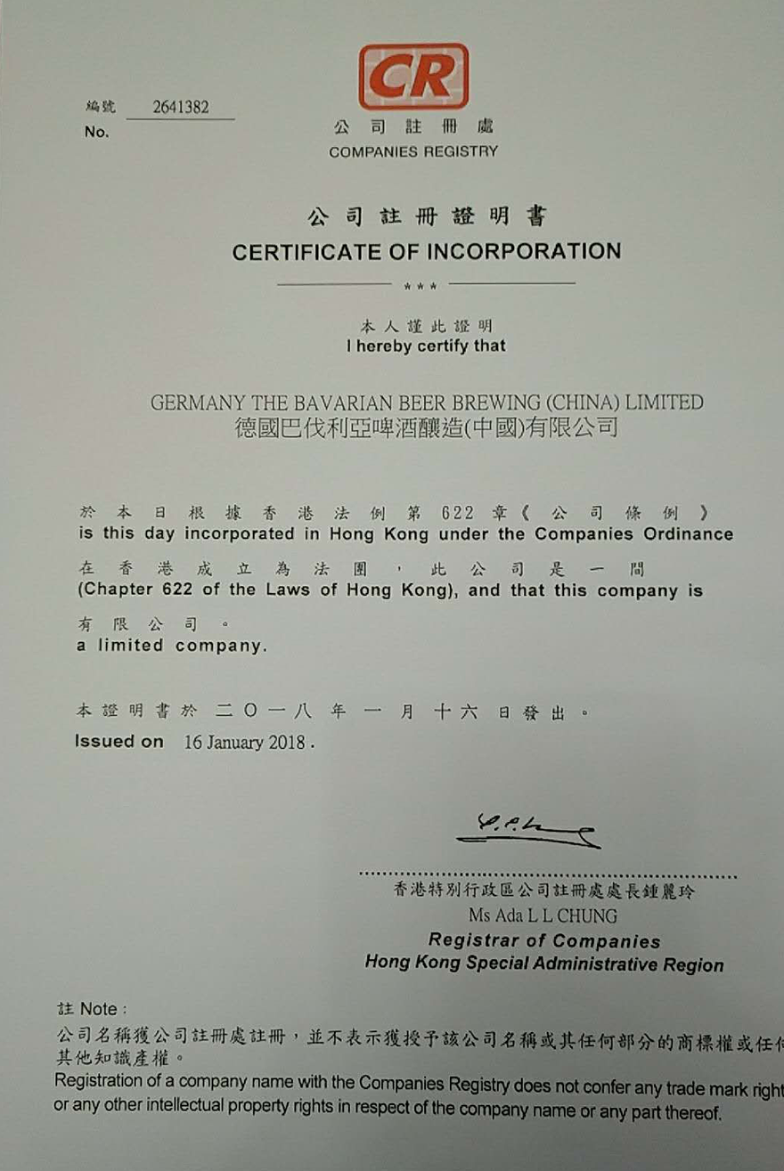 | 公司名稱: | 德國巴伐利亞啤酒釀造[中國]有限公司 | ||