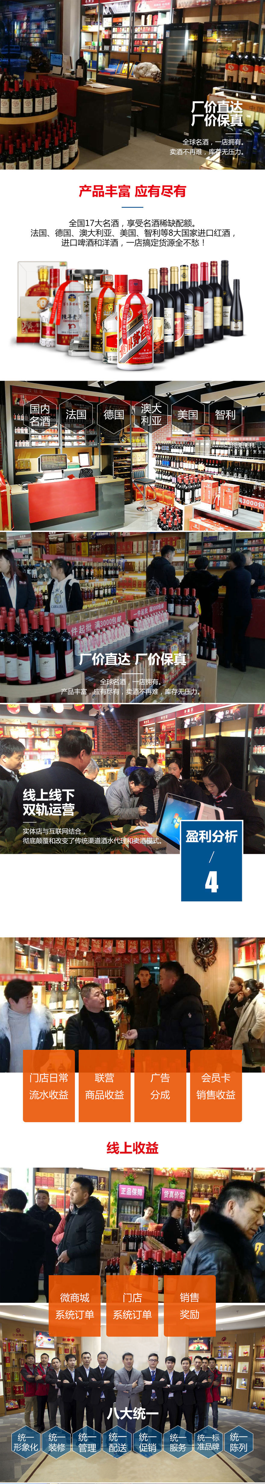 公司擁有雄厚的資金實力、專業的運營團隊、十大功能模塊及完善的售后服務體系。公司擁有非常優質的上下游廠 商資源,公司酒水產品有白酒、紅酒、洋酒、保健酒、啤酒等上千款產品,公司旨在打造“線上線下,雙軌運營”全新 酒類運營新模式,建立從廠家到經銷商之間層級少、成本低、采購供應、倉儲物流、數據營銷集成一體化數字服務平臺 。