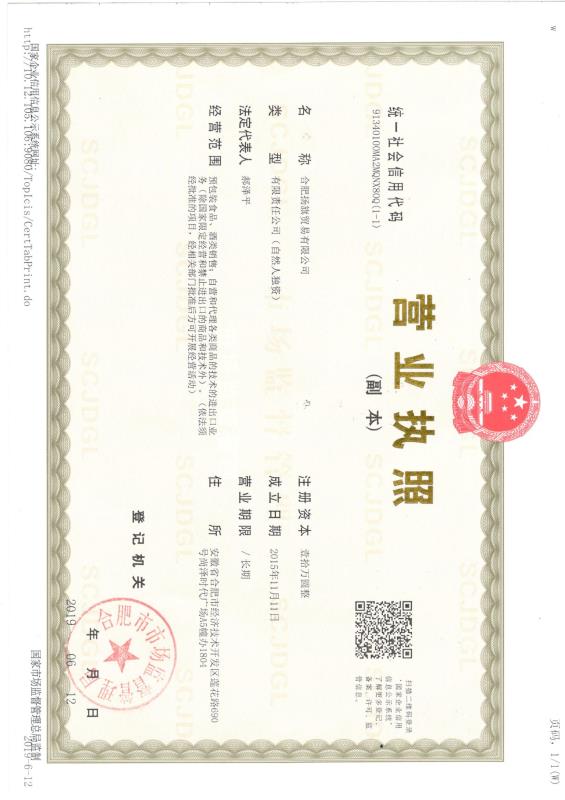 公司名稱: 合肥揚旗貿易有限公司