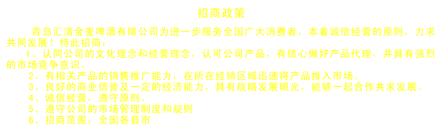 | 公司名稱: | 青島匯清金麥啤酒有限公司 | ||